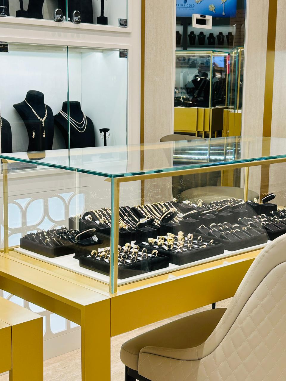Every design decision reinforces Prima Diamond'sbrand - a full-height glazed façade, bold signage, and a cohesive interior language that speaks of quality and exclusivity.