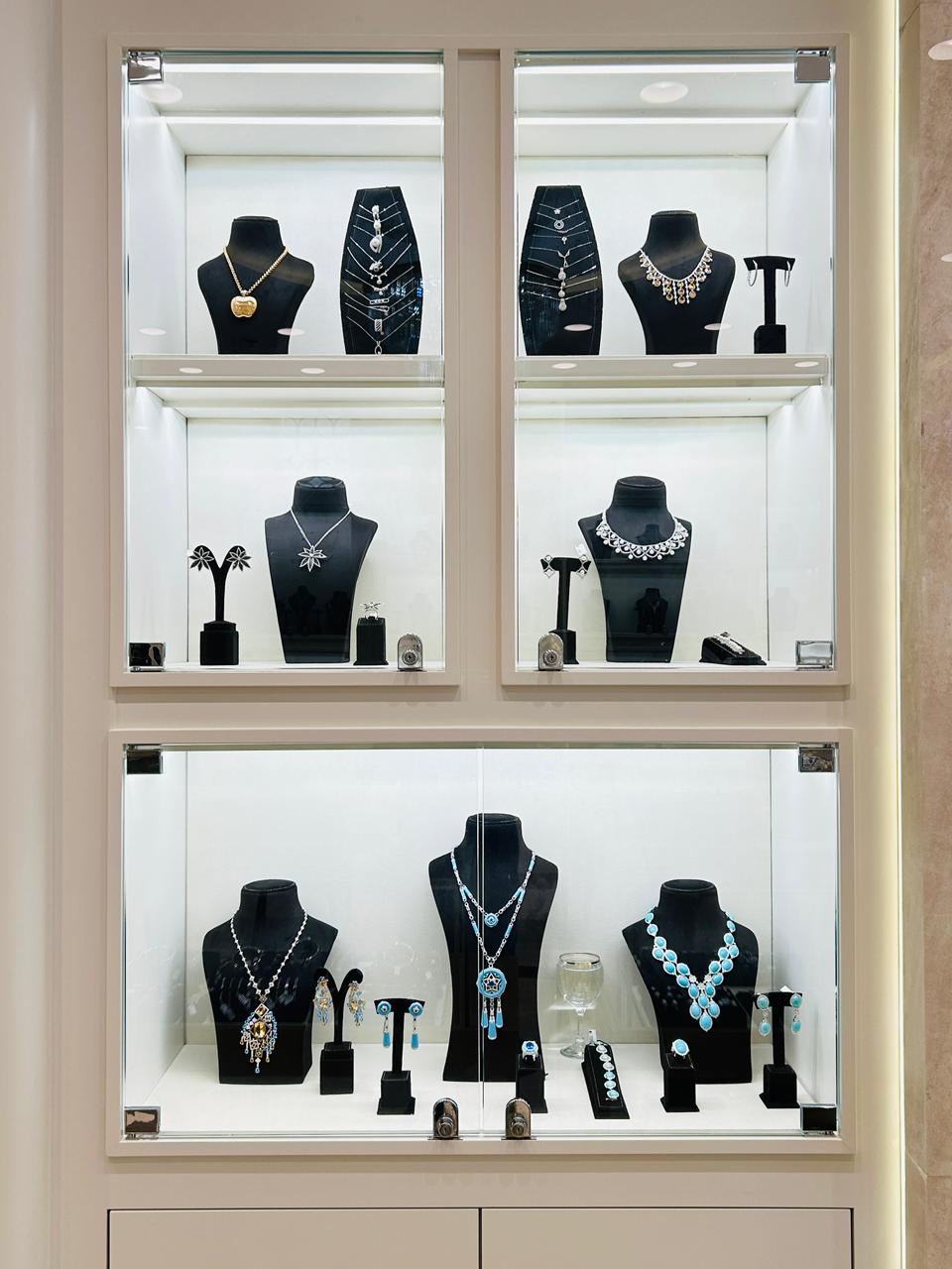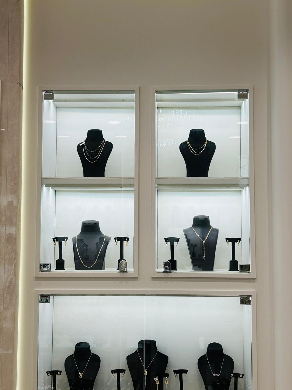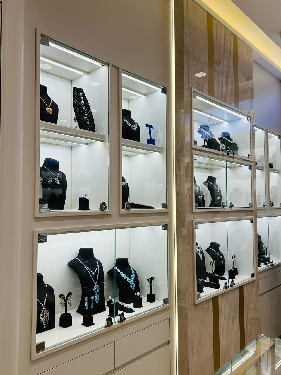 Bespoke showcase units and wall display systems crafted to present each jewelry piece at its finest, drawing the eye and elevating every item on display.