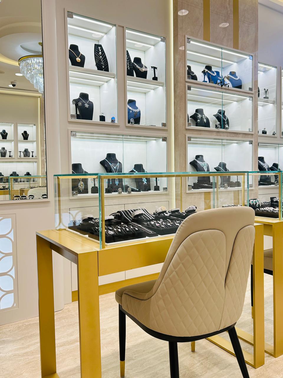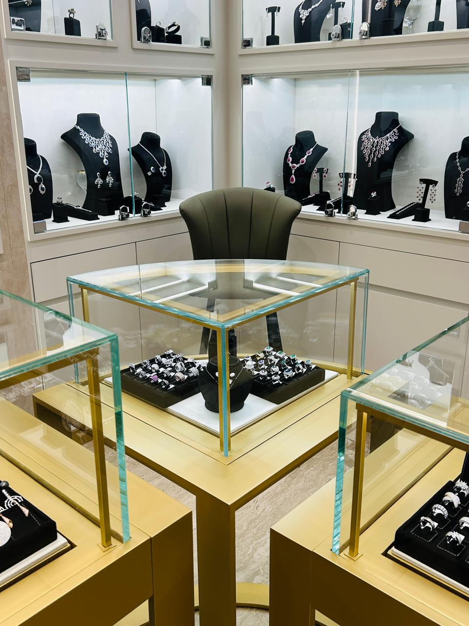 The design concept focuses on enhancing product visibility while maintaining a sophisticated and inviting atmosphere. Custom-built display units, refined materials, and warm ambient lighting were carefully integrated to highlight the brilliance of each piece. The layout ensures smooth customer flow, allowing visitors to explore the space comfortably while maintaining privacy during purchase interactions.